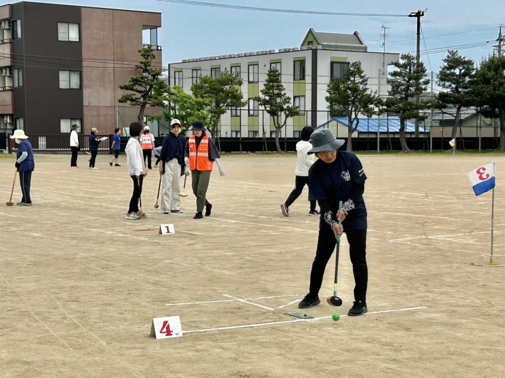 公民館 長谷川館長と、町会連合会 髙山会長の始球式でプレイがスタート!