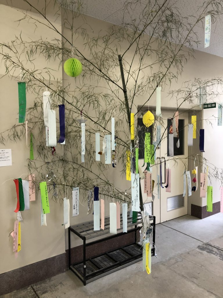 伏見台小学校で2年目となる七夕飾りが行われた。