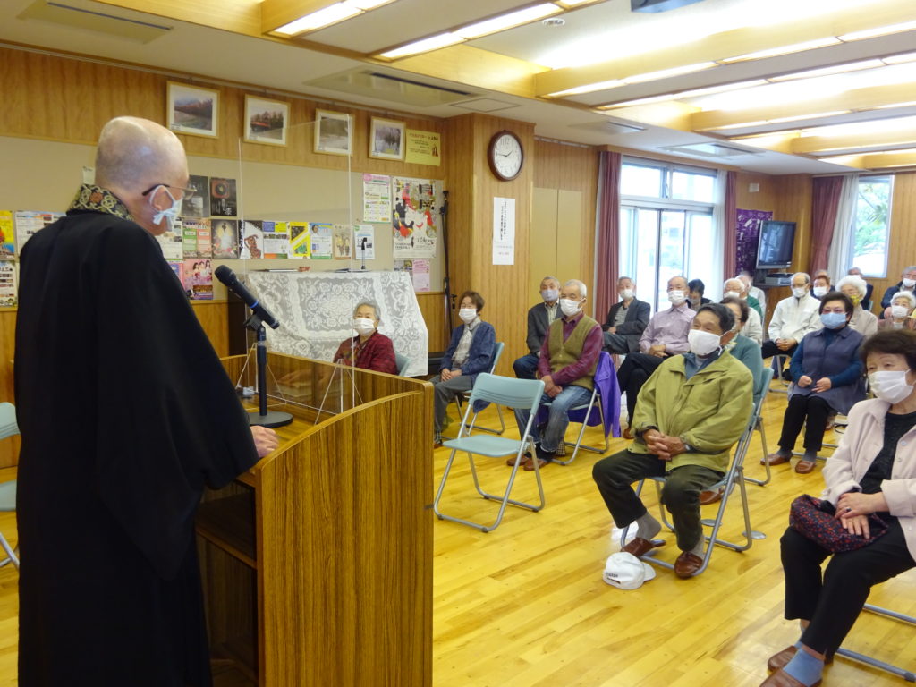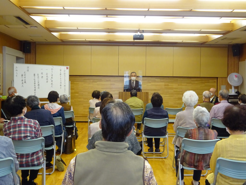 「わらじ学級」開級式と法話を開催 【2021.4.28】 老人会のわらじ学級開級式及び法話を開催しました。 開級式では長谷川公民館館長、藤下社会福祉協議会会長から御祝辞を頂き、全員で開催を喜び合いました。 開級式に続き、藤下光明寺住職の法話をお聞きしました。 『他人と比べて欲張らず、不平不満はぐっと堪えましょう』 『先のことを不安がらず、今を大切に生きましょう』 と人生の指標となるお話でした。
